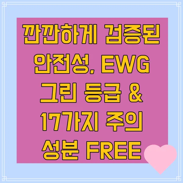 깐깐하게 검증된 안전성, EWG 그린 등급 & 17가지 주의 성분 FREE