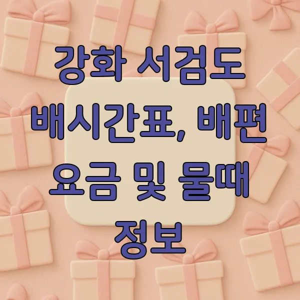 자, 이렇게 강화 서검도 배시간표, 배편 요금, 물때 정보를 알아봤는데요. 이 정보들을 잘 활용해서 즐겁고 안전한 서검도 여행을 다녀오시길 바랄게요! 서검도의 아름다운 자연과 풍성한 해산물이 여러분을 기다리고 있을 거예요!