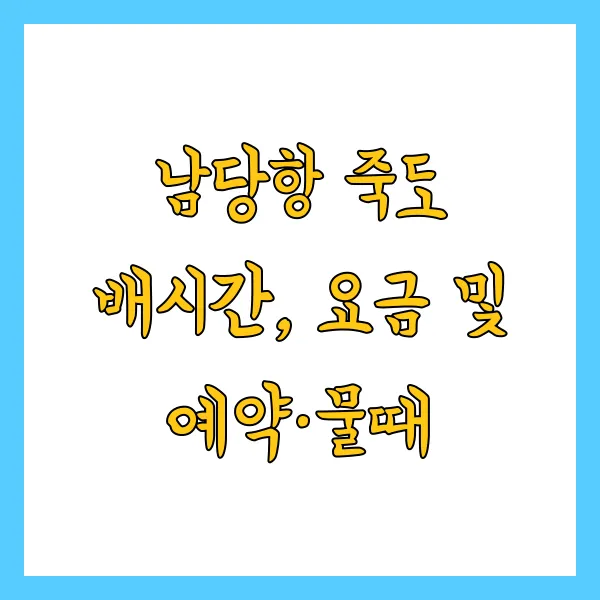 자, 이렇게 남당항에서 죽도로 떠나는 배편에 대한 모든 정보를 꼼꼼하게 알아보았는데요. 배시간, 요금, 예약 방법은 물론, 물때 정보까지 확인했으니, 이제 죽도로 떠날 준비가 되셨나요? 아름다운 자연과 다양한 즐길 거리가 가득한 죽도에서 잊지 못할 추억을 만들어 보세요! 🥰