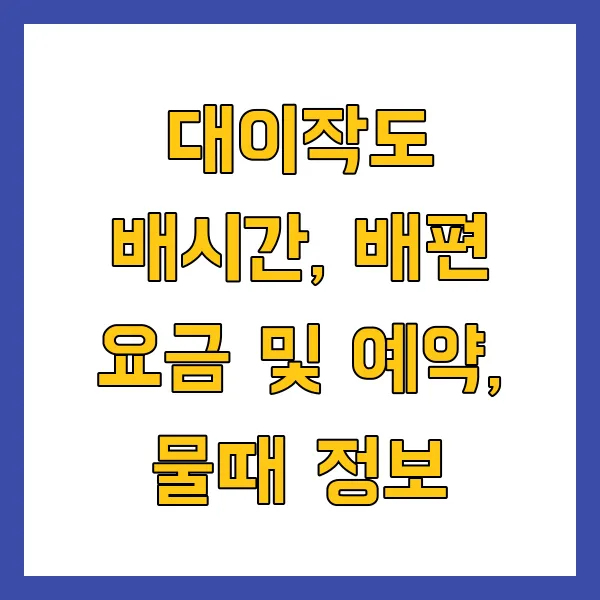 대이작도 배시간, 배편 요금 및 예약, 물때에 대해 알아볼까요? 대이작도는 아름다운 자연경관과 다양한 해양 액티비티를 즐길 수 있는 매력적인 섬인데요! 특히, 섬 여행에 있어서 배편 정보는 필수겠죠? 2025년 최신 정보를 바탕으로 대이작도 여행을 위한 모든 것을 꼼꼼하게 알려드릴게요. 배시간부터 요금, 예약 방법, 그리고 물때 정보까지! 이 글 하나로 대이작도 여행 준비는 끝났다고 보시면 됩니다! 😊