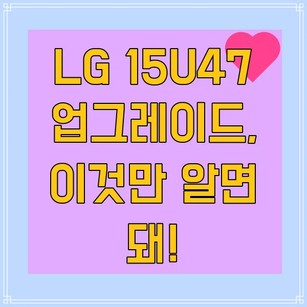 노트북 성능 향상을 위해 업그레이드를 고려하고 있다면 주목! LG 15U47은 메모리(RAM)와 저장 장치(SSD, HDD) 업그레이드가 가능 합니다. 하지만 업그레이드 전 호환성을 반드시 확인 해야 합니다. 제조사 홈페이지나 전문가의 도움을 받는 것을 추천합니다. CPU는 내장형이므로 업그레이드가 어렵다 는 점도 알아두세요.