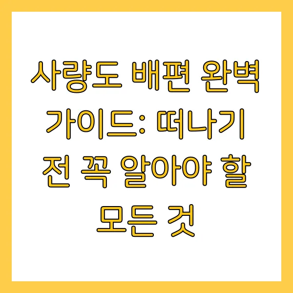 - 온라인 예약 필수? : 사량도 배편은 온라인 또는 현장에서 예매할 수 있습니다. 특히 주말이나 성수기에는 미리 예약하는 것이 좋습니다.
