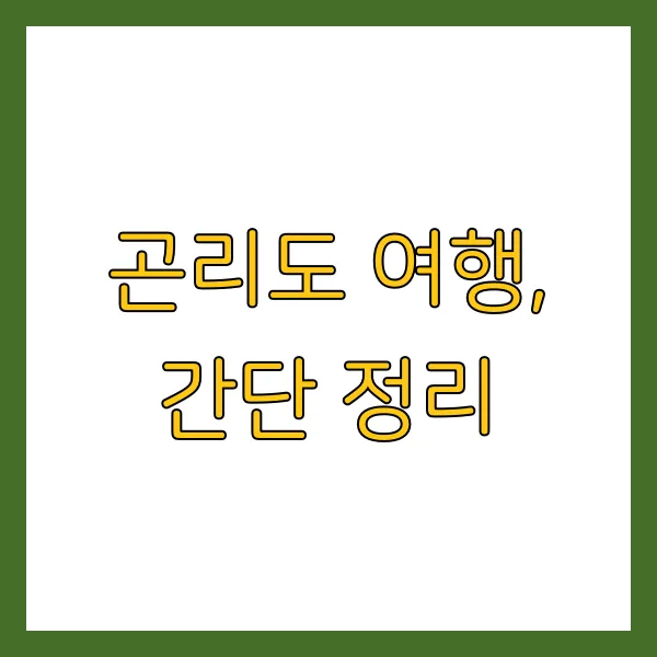 자, 이렇게 곤리도 여행에 대한 모든 정보를 꼼꼼하게 알아보았습니다. 곤리도는 작지만 매력적인 섬으로, 낚시와 트레킹을 즐기거나 조용하게 힐링하고 싶은 분들에게 최고의 선택이 될 것입니다. 2025년, 곤리도에서 아름다운 추억을 만들어 보세요!