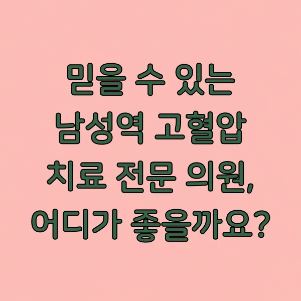 믿을 수 있는 남성역 고혈압 치료 전문 의원, 어디가 좋을까요?