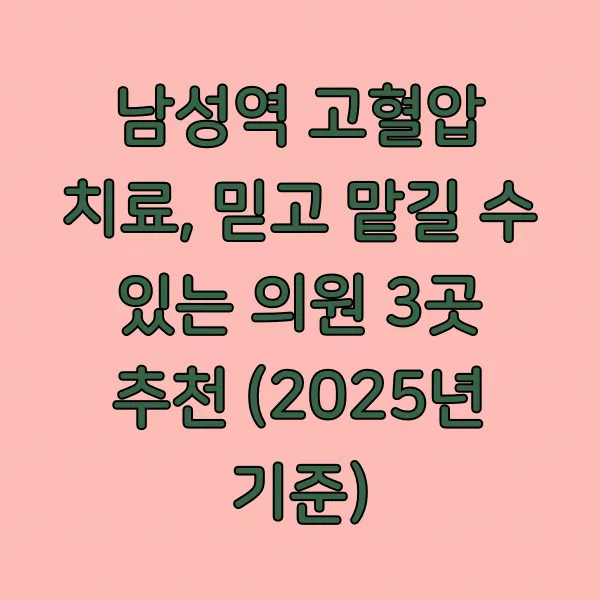 남성역 고혈압 치료, 믿고 맡길 수 있는 의원 3곳 추천 (2025년 기준)