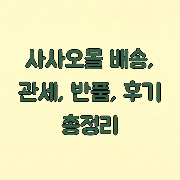 해외 직구족이라면 누구나 한 번쯤 들어봤을 '사사오몰'! 명품부터 패션, 뷰티까지 없는 게 없는데요. 막상 이용하려니 배송, 관세, 반품 때문에 망설여지셨죠? 2025년, 사사오몰 이용 꿀팁부터 실제 후기까지 싹 다 알려드릴게요. 이제 복잡한 절차 걱정 없이 쇼핑 제대로 즐겨보자고요! 😊