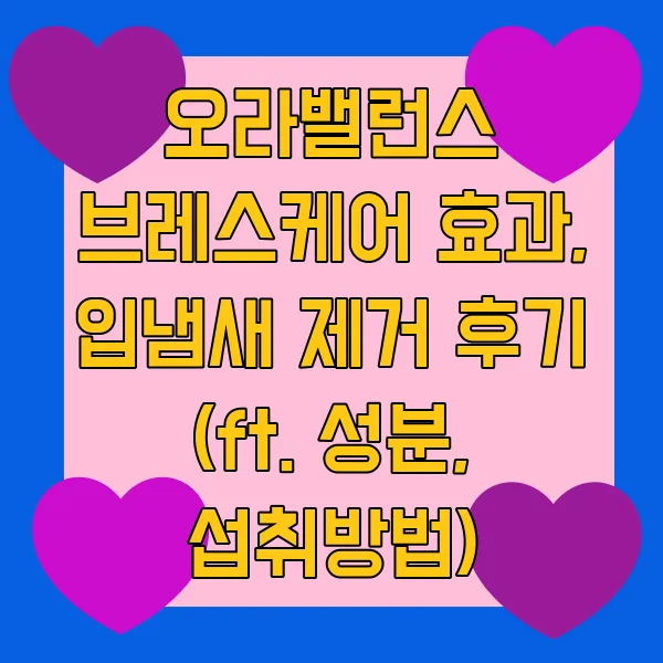 입냄새, 정말 신경 쓰이죠?😥 말할 때마다 자신감도 떨어지고, 대인관계에도 영향을 미치는 골칫거리!😫 오라밸런스 브레스케어가 그 고민을 해결해줄 구강 관리 필수템으로 떠오르고 있어요!✨ 특허 구강 유산균으로 입냄새 원인을 케어하고, 상쾌한 숨결을 되찾아보세요!💖 자, 그럼 지금부터 오라밸런스 브레스케어의 놀라운 효과와 솔직 후기, 성분 분석, 섭취 꿀팁까지~!! A to Z 낱낱이 파헤쳐 드릴게요!💯