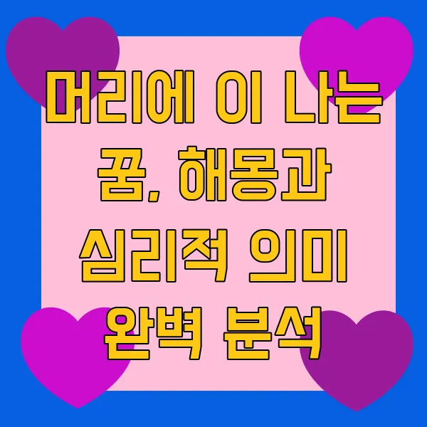 머리에 이가 바글바글?! 꿈에서 깨어나도 찝찝함이 가시질 않죠? 혹시 나쁜 꿈일까 걱정되시나요? 머리에 이 나는 꿈, 그냥 넘기지 마세요! 스트레스, 불안, 걱정 등 다양한 심리적 의미를 담고 있을 수 있답니다. 이 포스팅에서는 상황별 해몽부터 숨겨진 심리까지, 머리에 이 나는 꿈에 대한 모든 것을 속 시원하게 파헤쳐 드립니다! 꿈 해몽, 심리 분석, 스트레스 해소 팁까지?! 지금 바로 확인하세요!