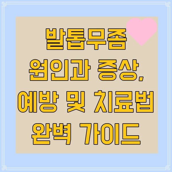 - 규칙적인 운동과 균형 잡힌 식단: 꾸준한 운동과 건강한 식단을 통해 면역력을 강화하는 것도 발톱무좀 예방에 큰 도움이 돼요! 면역력이 강하면 곰팡이균 감염에 대한 저항력도 높아진답니다.