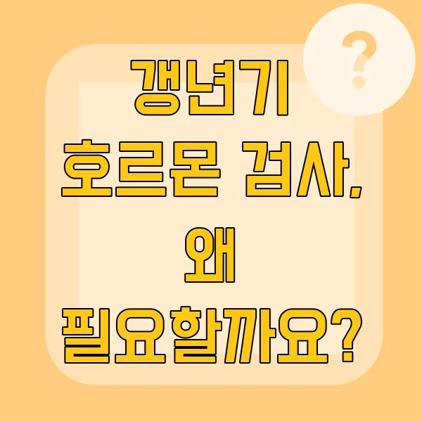 갱년기 증상, 혹시 나도? 😩 안면홍조, 불면증, 감정 기복…혹시 갱년기 초기 증상일까 봐 걱정되시나요? 갱년기 호르몬 검사, 비용과 절차가 궁금하신가요? 이 글 하나면 갱년기 호르몬 검사 A to Z 완벽 정복! 💯 갱년기, 더 이상 막연하게 두려워하지 마세요! 🤗 지금 바로 갱년기 호르몬 검사에 대한 모든 궁금증을 해결하고, 슬기롭게 갱년기를 관리하는 첫걸음을 내딛어 보세요! 🚀